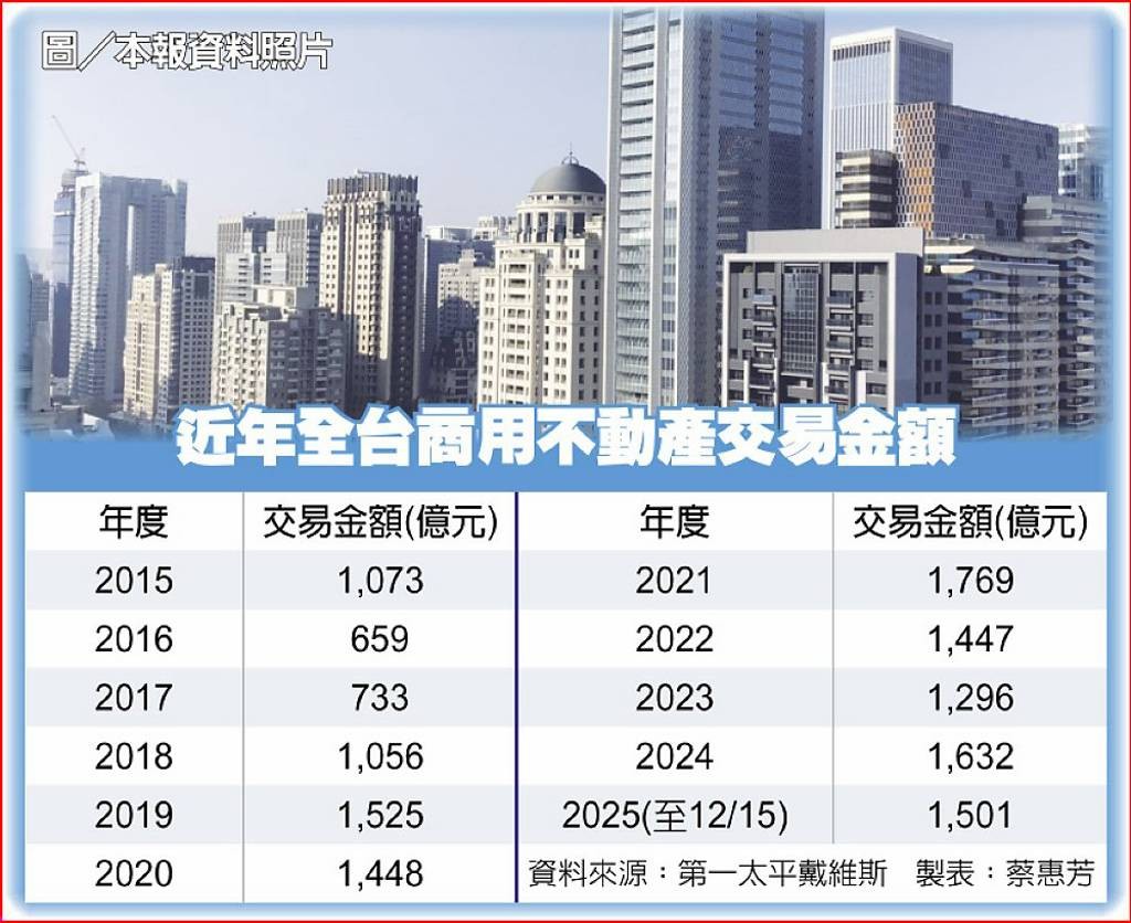 第一太平戴維斯董事長黃瑞楠16日表示,今年商用不動產成交金額1,501億元,站穩10年均線,美國對等關稅衝擊效應並沒有原本預期來得嚴重;展望2026年,上半年最大變數將視台美關稅談判結果而定,企業布局、商用不動產市場需求會隨之連動。